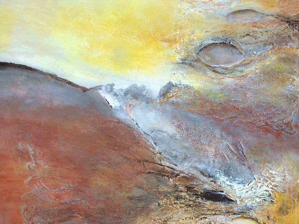 Haar tweede passie gaat naar het schilderen met acrylverf. Net als de andere kunstenaars in deze expo maart ze deel uit van de kunstkring ARTELIER waar er technieken worden toegepast. Chris haar voorkeur gaat naar het gebruiken van acrylverf met als basis verschillende structuren. Deze techniek is eveneens uitdagend omdat ze vanuit de buik en de gevoelens steeds meer andere resultaten geven. Compositie en tonaliteiten zijn voor haar bijzonder belangrijk in het opbouwen van elk nieuw schilderij.