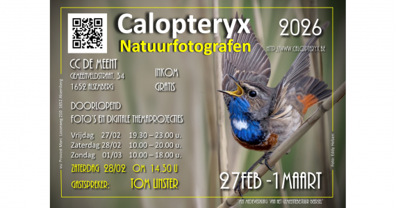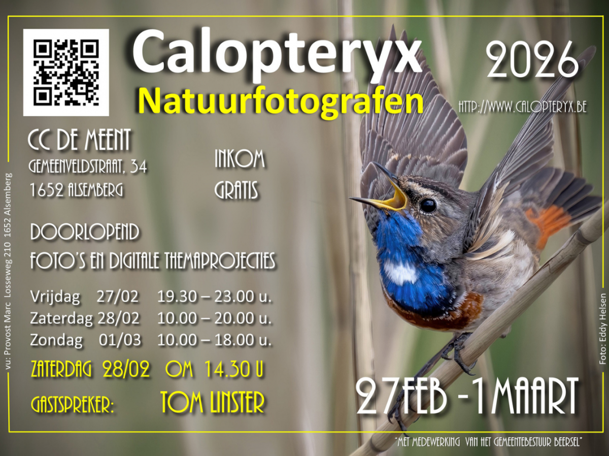 CALPOTERYX NATUURFOTOGRAFIE OPENINGSWEEKEND 27-28 februari en 1maart 2026 – Foyer CC de Meent